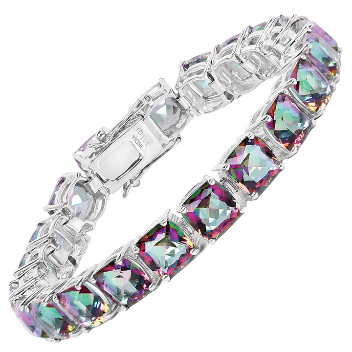 Your wrist will sparkle in this eye-catching rainbow quartz bracelet with 18K white gold plated settings made of high quality 925 sterling silver.