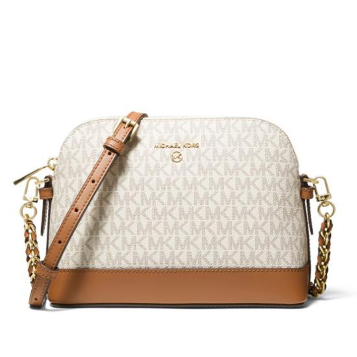 MICHAEL KORS LARGE LOGO DOME CROSSBODY - WHITE.