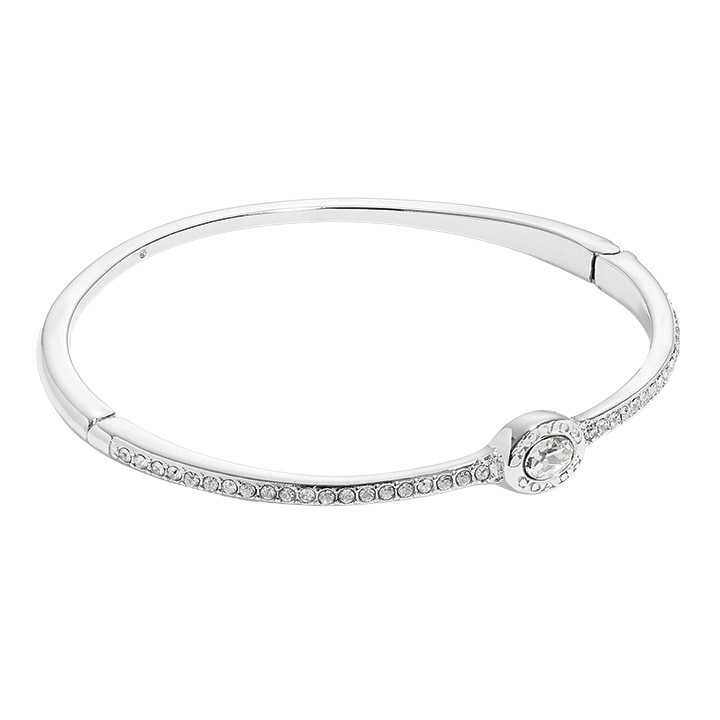 This glistening pavé hinged bangle is perfect for every day, featuring a sparkling stone at its front, haloed with the Coach signature logo. The bracelet is handcrafted from polished brass and glass crystal and finished in rhodium, with a hinge closure. It measures 0.3” wide x 7” long and includes a signature Coach jewelry pouch.