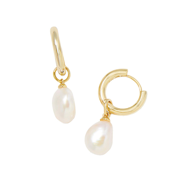 Classy and chic, these Willa gold and pearl huggie earrings from Kendra Scott feature dainty cultured freshwater pearls dangling from a petite huggie. This is a lightweight style you can pair with any stack.