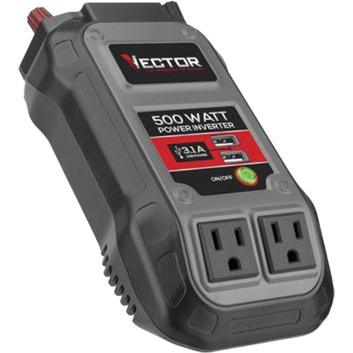 The Vector 500-watt power inverter is the ideal solution for power when and where you need it, giving you both freedom and function. You can get 500 watts of power by connecting directly to your vehicle’s battery with the terminal posts and battery clamps for tailgating, camping, and other times when you need more power. Or use the 12V DC plug in your car for 120 watts of power to keep your laptops, phones, gaming devices and more powered up with the two USB ports.