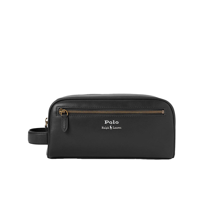 Crafted from full-grain leather, this leather travel case from Polo Ralph Lauren is the perfect size to hold your grooming essentials. It has a leather handle at one side, top-zip closure, multiple zip pockets, polyester lining, and a Polo Ralph Lauren and signature pony embossed on the front. Measures 10” x 4.25” x 5”.